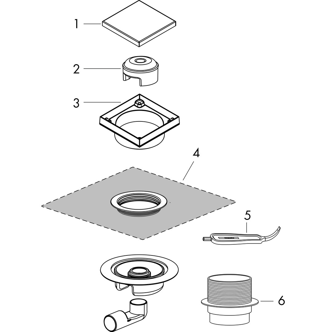 hansgrohe RainDrain Spot Boden-Punktablauf Komplettset, 150x150mm, rückseitig befliesbar, Edelstahl