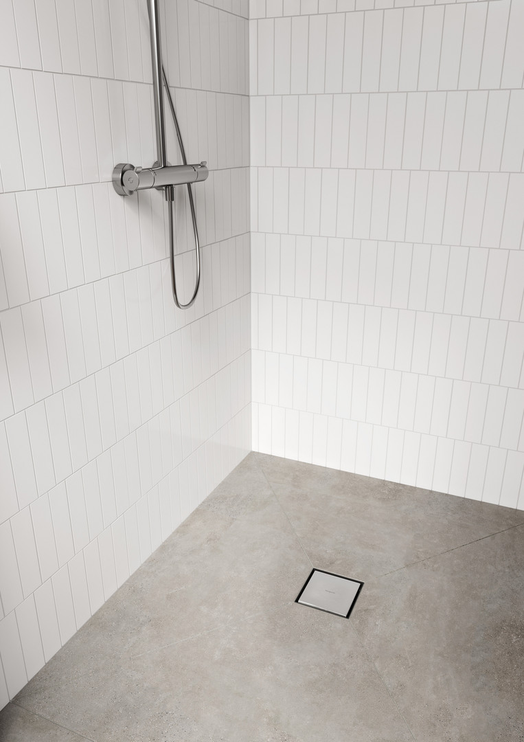 150 x 150 mm, besteht aus Designabdeckung, Grundkörper, Siphon, werkseitig vormontiertes Dichtvlies, Bauschutzkappe, Werkstoffgüte Abdeckung Edelstahl V2A (1.4301), vormontierte Dichtmembran, Sperrwasserhöhe 50 mm, Nenndurchmesser Anschluss DN40, Richtung Auslass waagrecht vormontiert, senkrecht einsetzbar, höhenverstellbar um 10 mm, bis zu 35 l/min Ablaufleistung, Anwendungsbereich Neubau, Sanierung, herausnehmbarer Geruchsverschluss, dreh- und verstellbares Siphongehäuse, leicht zu reinigender Siphon, Typ des Geruchsverschlusses flüssig, Mindestbauhöhe 95 mm, Material Siphon ABS, Montageart frei im Raum, Tiefe der Fliesenmulde 12 mm