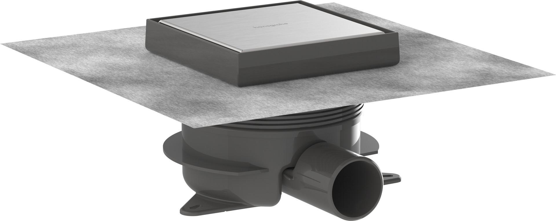 hansgrohe RainDrain Spot Plus Punktablauf Komplettset, mit höhenverstellbarem Rahmen, rückseitig befliesbar, Edelstahl Finish