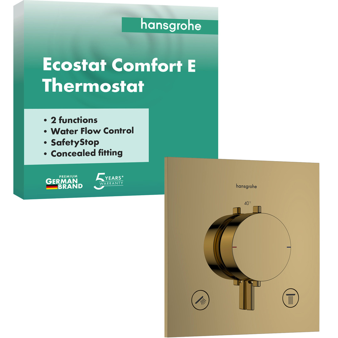 hansgrohe Thermostat Ecostat Comfort E UP, für 2 Verbraucher, 24 l/min, polished gold optic
