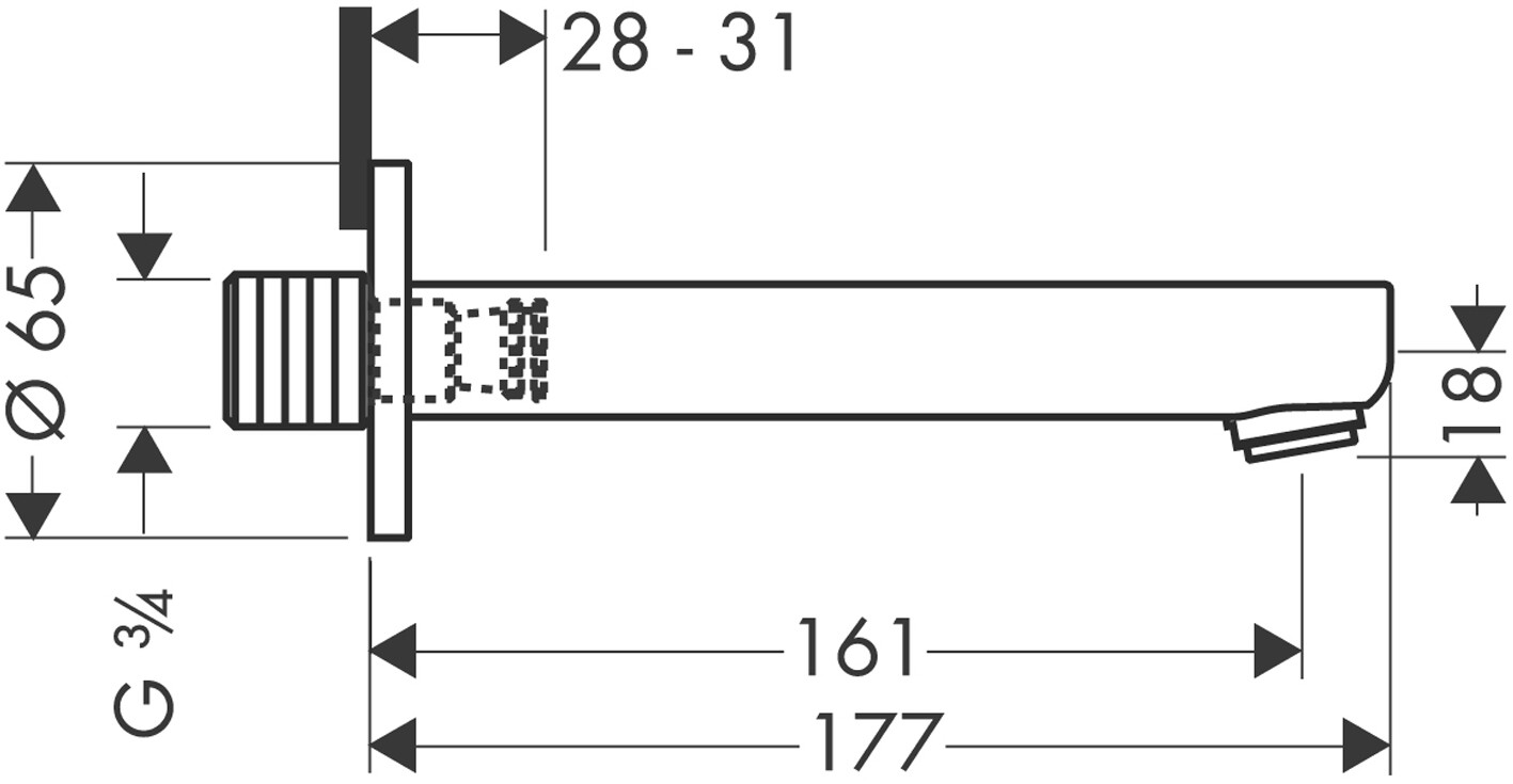 hansgrohe Wanneneinlauf Metris S Wandmontage, Ausladung 161mm, chrom