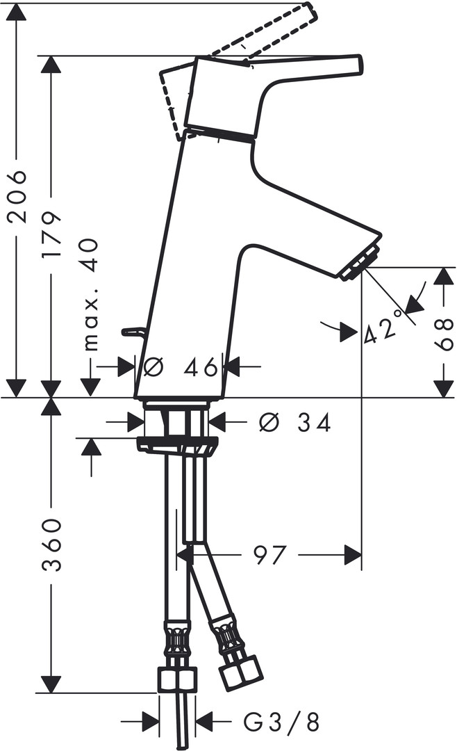 | Art der Ablaufgarnitur | Pop-up-Ventil mit vertikalem Hebel |