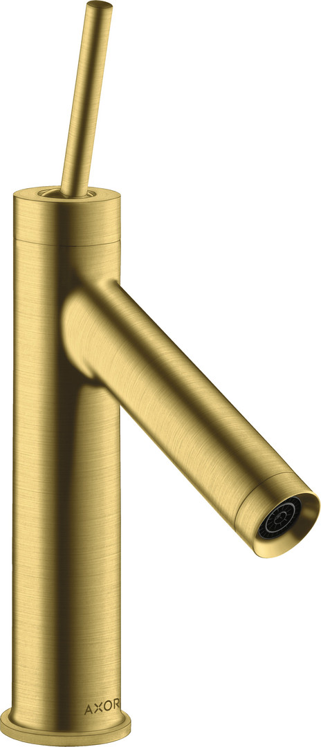 hansgrohe Waschtisch-Einhebelmischer 90 Axor Starck Ausladung 112mm, mit Pin-Griff, unverschließbare Ablaufgarnitur, brushed brass