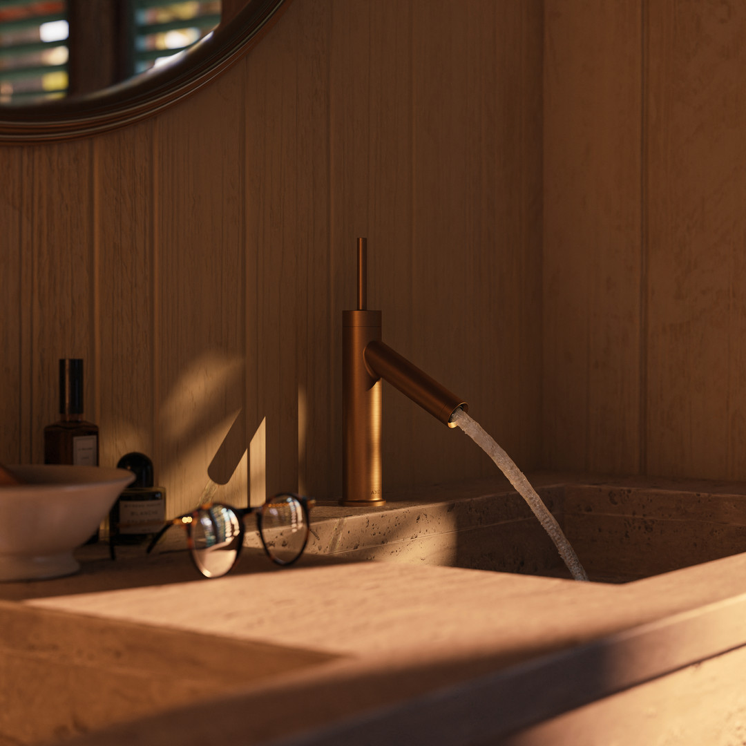 hansgrohe Waschtisch-Einhebelmischer 90 Axor Starck Ausladung 112mm, mit Pin-Griff, unverschließbare Ablaufgarnitur, brushed bronze
