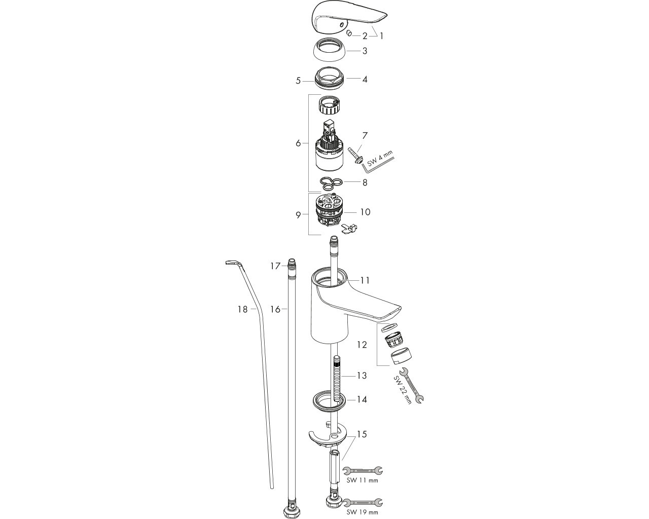 | Art der Ablaufgarnitur | Pop-up-Ventil mit vertikalem Hebel |