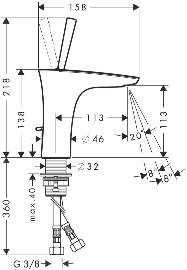 ComfortZone 110, Ausladung 113 mm, Laminarstrahl, schwenkbarer Strahlformer, Durchflussmenge bei 3 bar 5 l/min, Joystick-Keramikmischsystem, für Durchlauferhitzer geeignet, Ablaufventil aus Metall, Anschlussart G 3/8 Anschlussschläuche, Anschlussgröße DN 15, EcoSmart, Quick Clean, P-IX 19313/IO