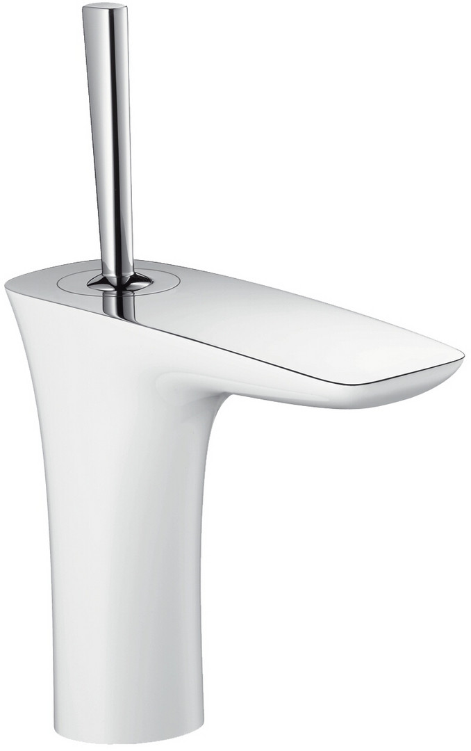hansgrohe Waschtisch-Einhebelmischer PuraVida 110 für Handwaschbecken, mit Zugstangen-Ablaufgarnitur G 1 1/4, weiß/chrom
