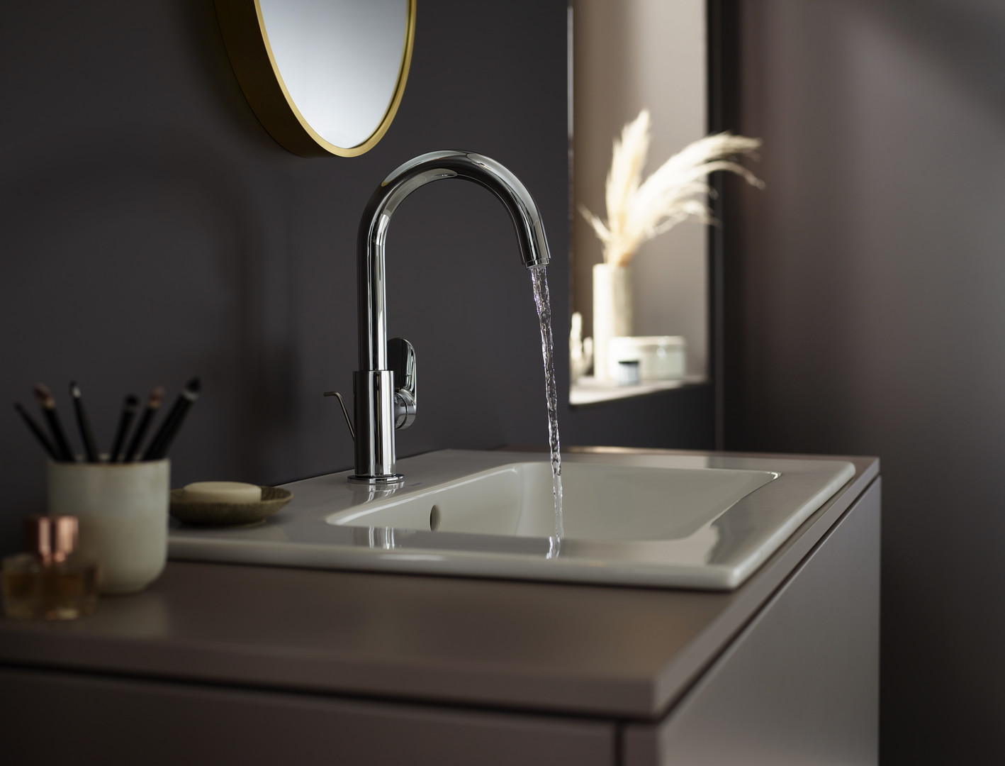 ComfortZone 200, Ausladung 166 mm, Auslaufhöhe 200 mm, Schwenkbereich einstellbar in 2 Stufen auf 120° oder 360°, Strahlart Laminarstrahl, max. Durchflussmenge bei 3 bar 5 l/min, Keramikmischsystem, für Durchlauferhitzer geeignet, Zugstangen-Ablaufgarnitur G 1 1/4, Ablaufventil aus Synthetik, Anschlussart G 3/8 Anschlussschläuche, Anschlussgröße DN 15, EcoSmart