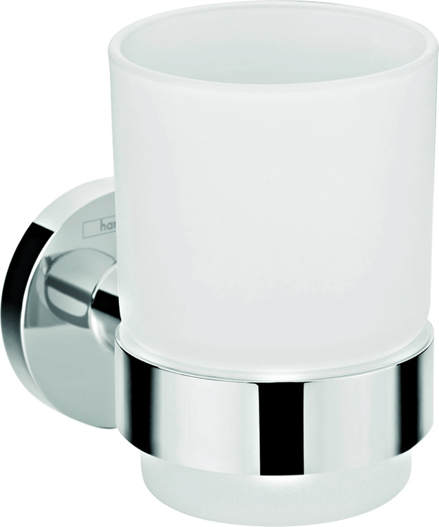 hansgrohe Zahnbecher Logis Universal Wandmontage, Glaseinsatz Mattglas, Metall, chrom