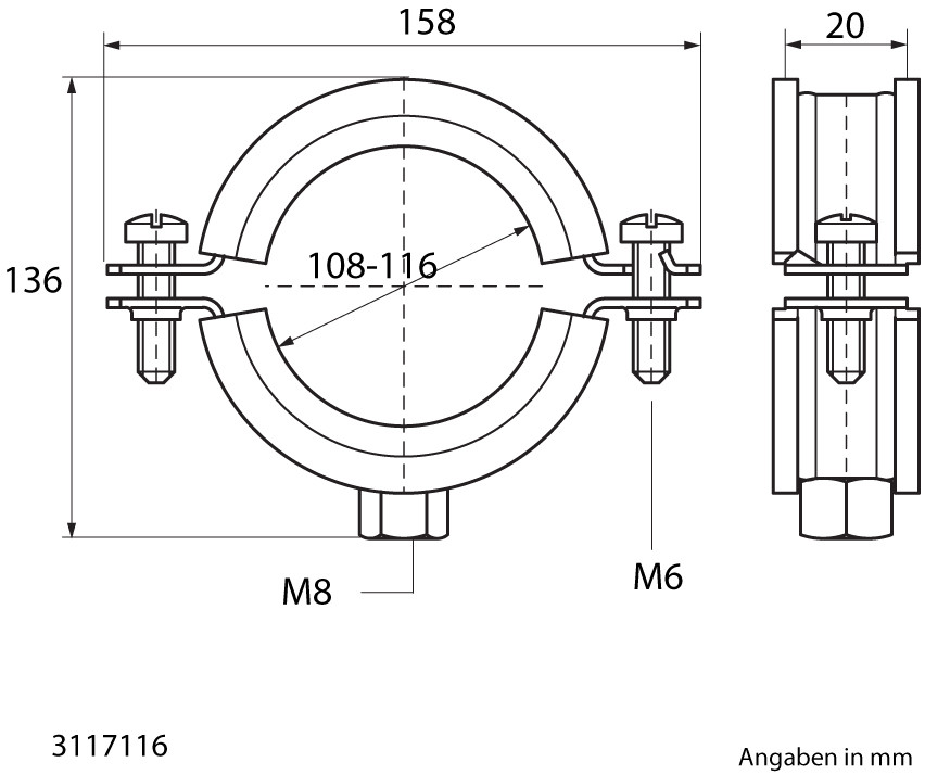 Walraven Zweischraubenschelle BIFIX 1301 M 8, 108-116 mm, mit Schallschutz, Edelstahl