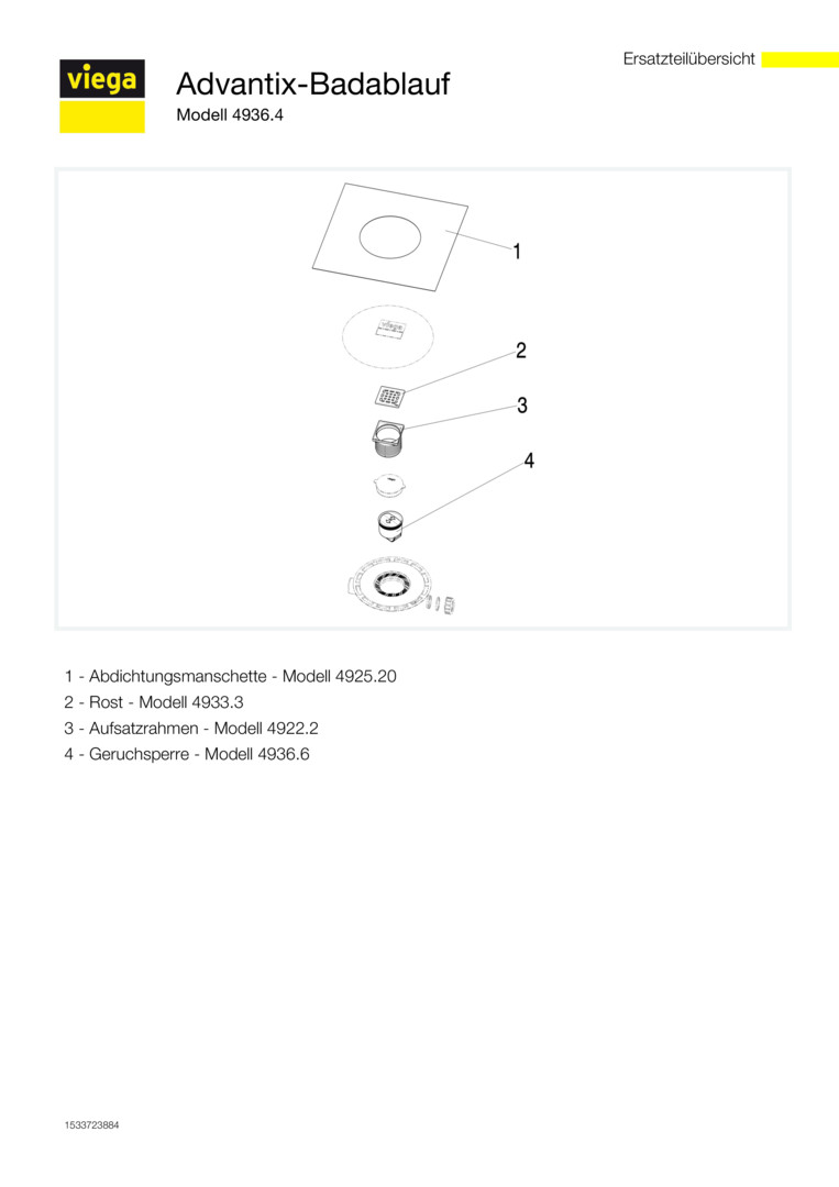 Viega Badablauf Advantix 4936.4 Aufsatz mit Rahmen aus Kunststoff, DN 50, geruchsicher K19735519