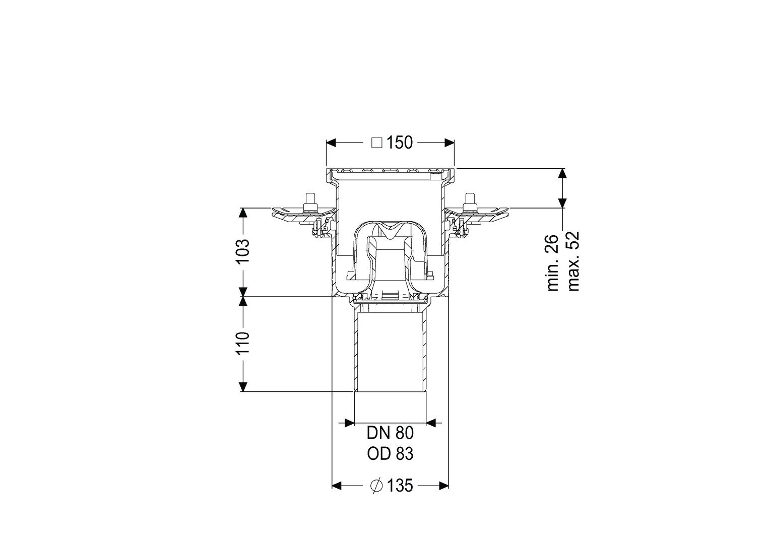 bestehend aus Grundkörper mit Auslauf senkrecht, aus Ecoguss resistant, mit Pressdichtungsflansch, Geruchsverschluss, Auslaufstutzen für SML-Rohranschluss, Sperrwasserhöhe 50 mm, Kernlochbohr-Maß 160 mm, Aufsatzstück aus ABS, Schlitzrost 138 x 138 mm, aus Edelstahl V2A, Klasse K 3, verschraubt