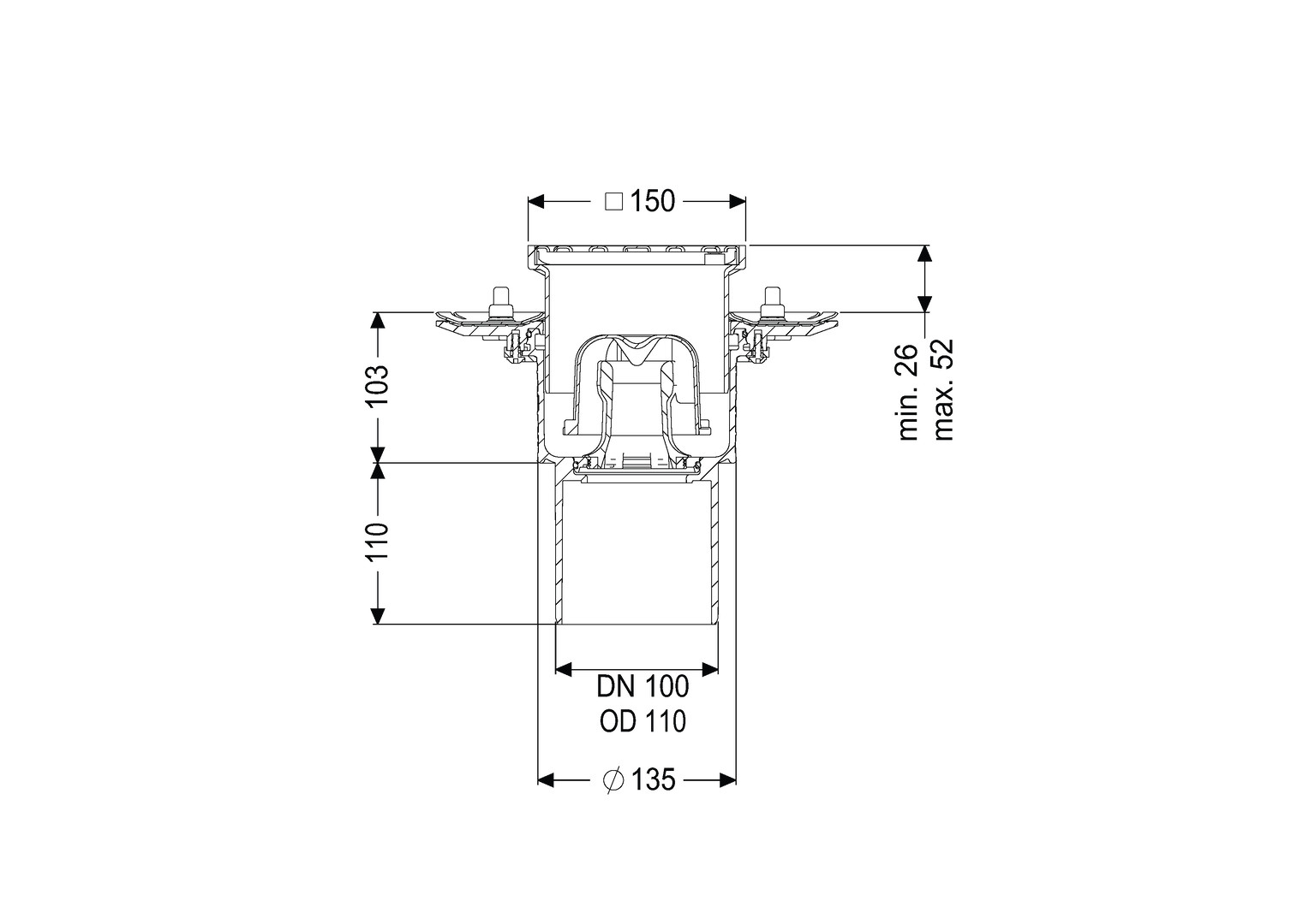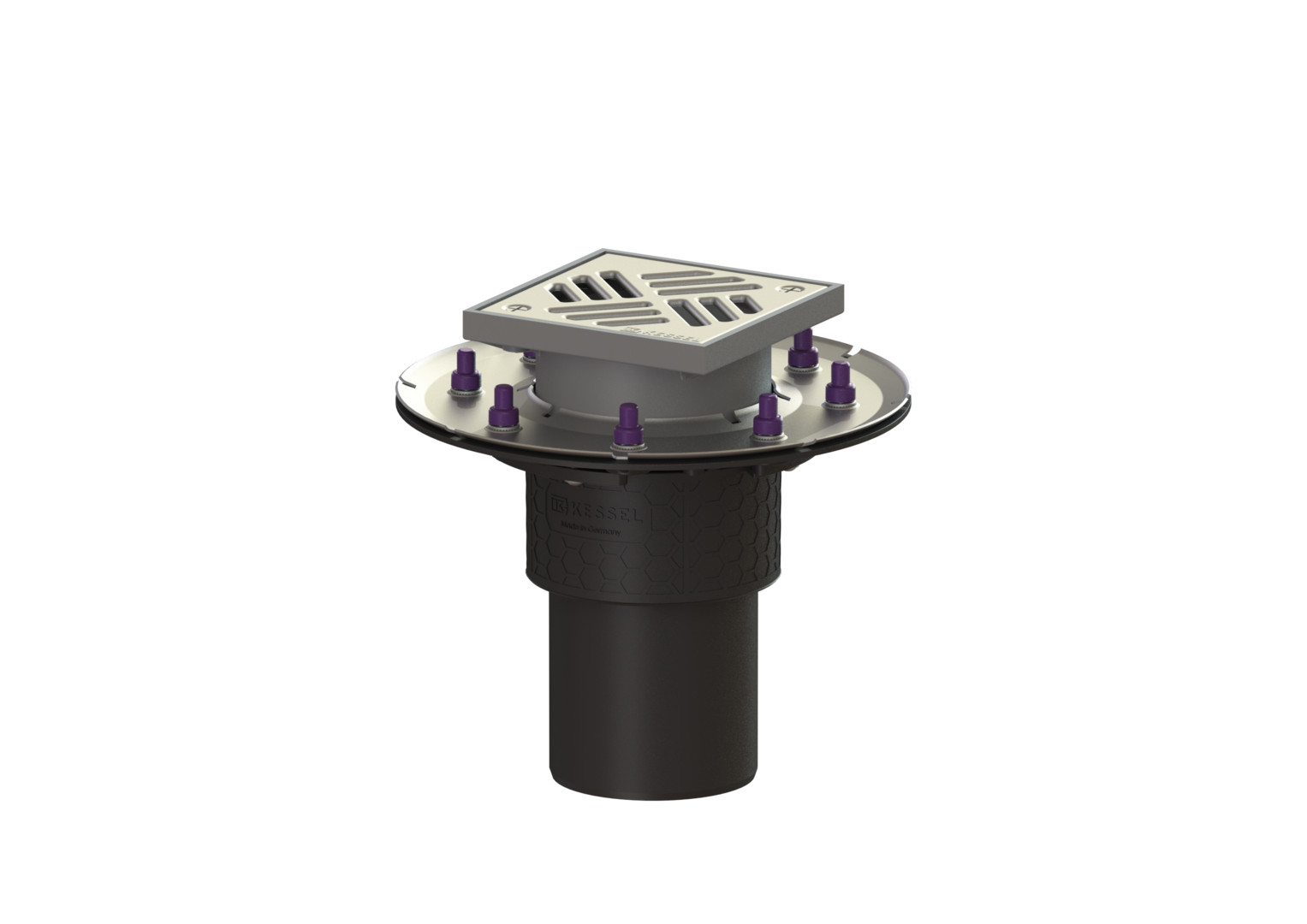 bestehend aus Grundkörper mit Auslauf senkrecht, aus Ecoguss resistant, mit Pressdichtungsflansch, Geruchsverschluss, Auslaufstutzen für SML-Rohranschluss, Sperrwasserhöhe 50 mm, Kernlochbohr-Maß 160 mm, Aufsatzstück aus ABS, Schlitzrost 138 x 138 mm, aus Edelstahl V2A, Klasse K 3, verschraubt