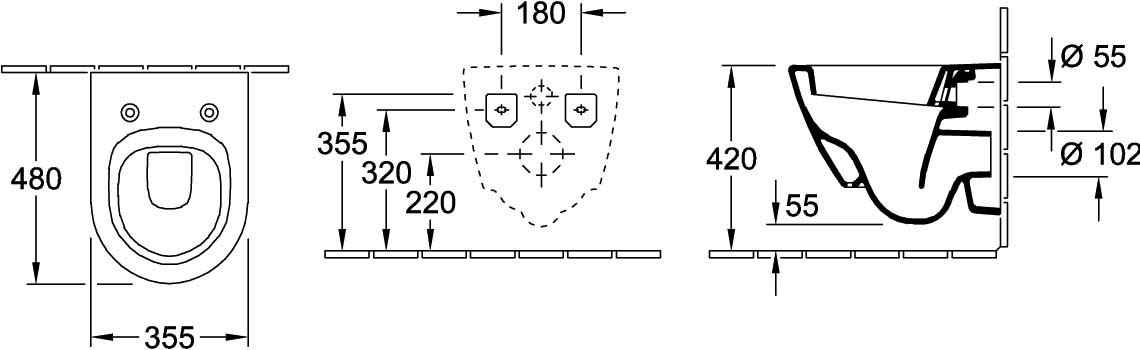 | Mittenabstand Befestigung Wand-WC | 180 mm |