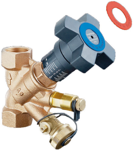 beiderseits Innengewinde nach EN 10226, voreinstellbar, Gewinde, Rotguss, PN 25 mit montiertem Anschluss-Set 3= 1 Messventil G 1/4 und 1 F+E Kugelhahn G 1/4
