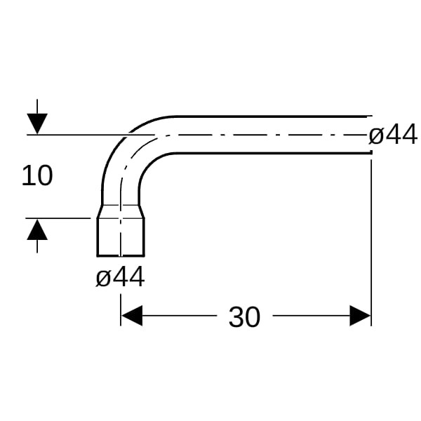 Geberit Spülbogenverlängerung 90Grad, 30x10cm, mit Steckmuffe, weiß 146885