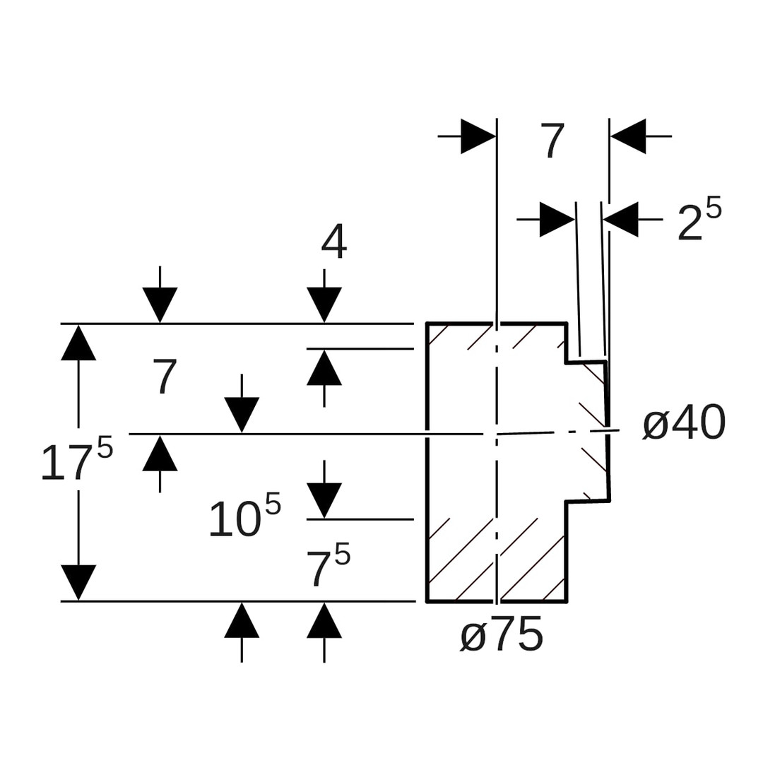 | Rohraußendurchmesser Anschluss 1 | 75 mm |