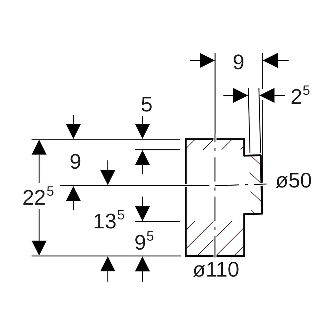 | Rohraußendurchmesser Anschluss 1 | 110 mm |
