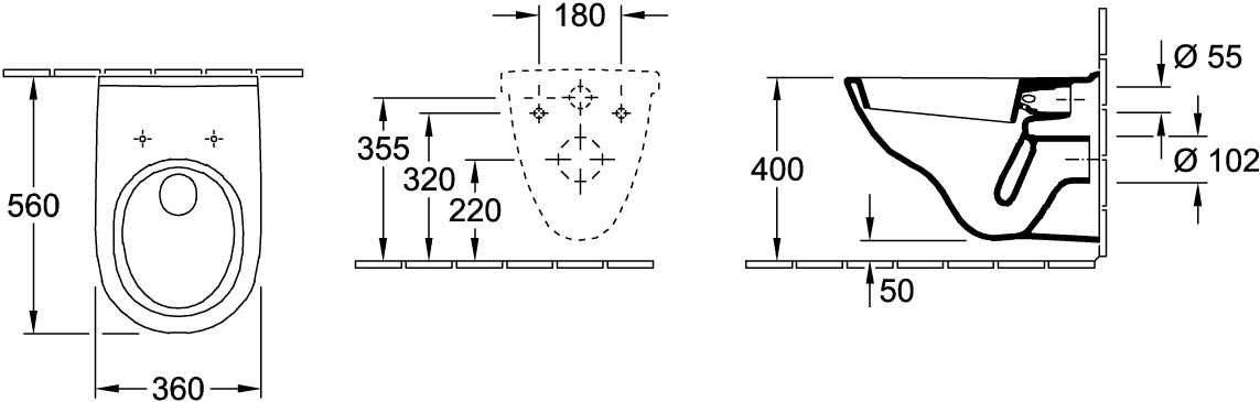 V&B Wand-Tiefspül-WC O.NOVO 36 x 56 cm, Abgang waagerecht, weiß