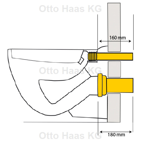 HAAS PE-Wand-WC-Anschlussgarnitur DN 110/110, Abdeckkappen chrom, 180mm, mit eingepresster Dichtung, schwarz