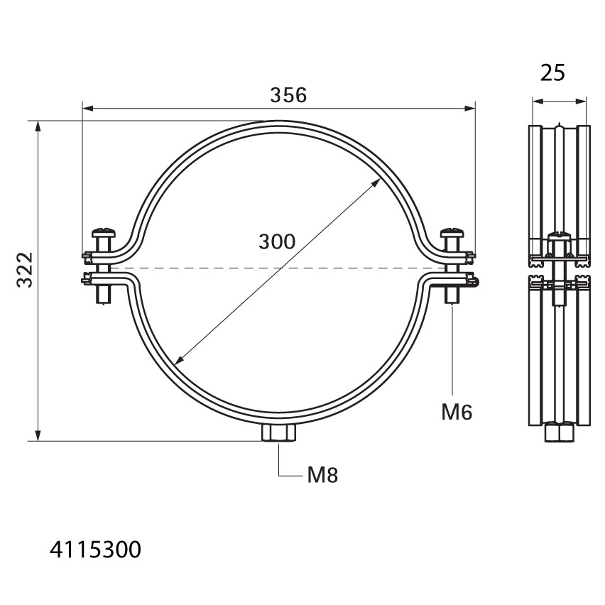 Walraven Lüftungsschelle Aero M 8, 300 mm, mit Schallschutz, sendzimirverzinkt, Stahl