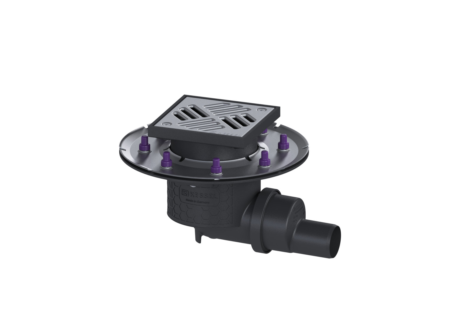 Kessel Bodenablauf Practicus DN/DA 70/75, 134 x 107 mm, Grundkörper, Aufsatzstück mit Schlitzrost K7561610