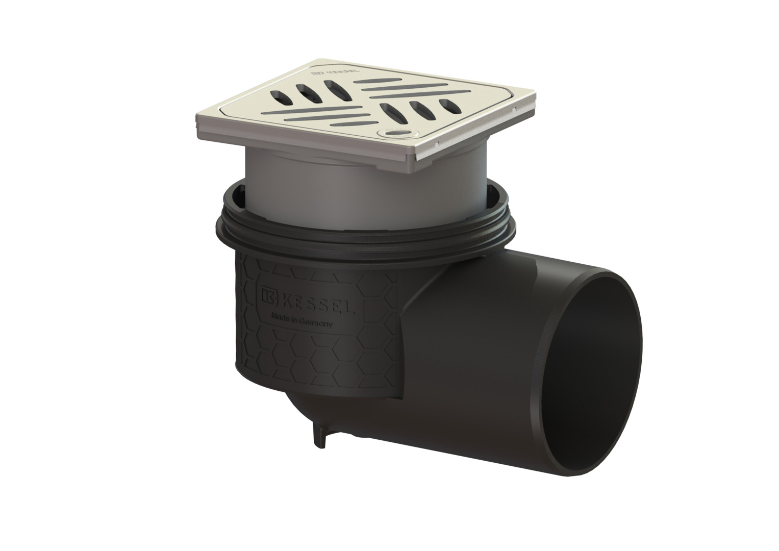 Kessel Bodenablauf Ecoguss DN/DA 100/110, 148 x 92 mm, Grundkörper, Aufsatzstück mit Designrost