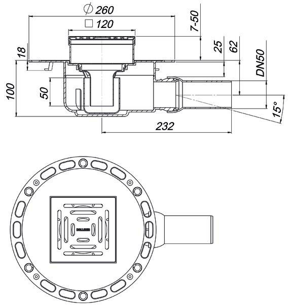 Dallmer Bodenablauf TistoDrain CKC 12, 120 x 120 mm, DN 50