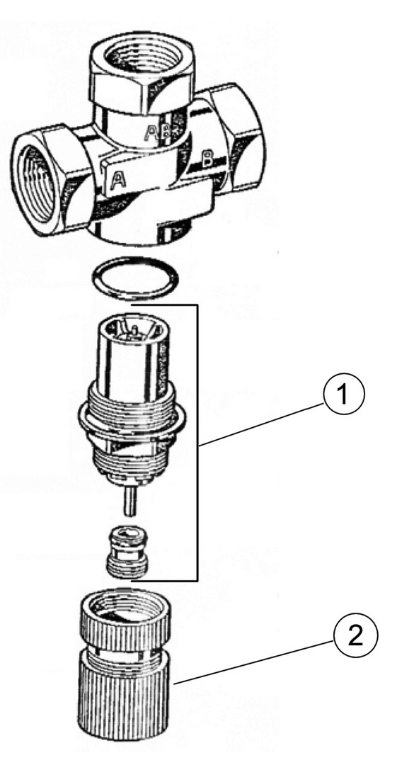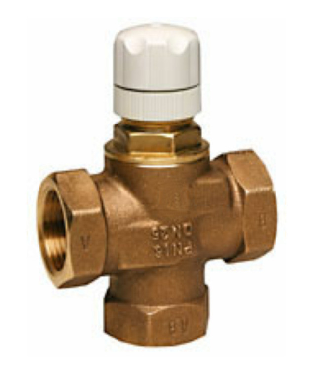 in Verbindung mit den Thermostaten T100R oder T100RS können die Ventile zur Warmwasserregelung verwendet werden, federbelasteter Ventilkegel (druckentlastet), kleiner Hub mit hohem Kvs-Wert, mit unverlierbarem Handrad, die obere Spindelabdichtung ist während des Betriebs ohne Entleeren der Anlage auswechselbar, Handkappe aus weißem Kunststoff, Ventilgehäuse PN16 mit Innen- und Außengewinde aus Rotguss, Ventileinsatz aus Messing/Kunststoff mit O-Ringen aus EPDM und Weichdichtungen, Überwurfmutter/Gewindetülle und Dichtungen aus Messing, Wirkungsweise Eingang B geschlossen in unbelastetem Zustand, Medium Wasser oder Wasser-Glykol-Gemisch gemäß VDI-Richtlinie 2035, max. Betriebsdruck 16 bar, Diff.-Druck mit 90N-Antr. 10 bar, Hub 2 mm, Mediumstemperatur -10 bis 120 °C, stat. Druck PN16, Regelcharakteristik linear