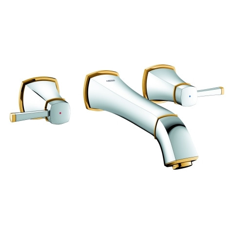 GROHE Fertigmontageset Grandera 1/2", Waschtisch-3-Loch-Wandarmatur, Ausladung 23,4cm, chrom/gold