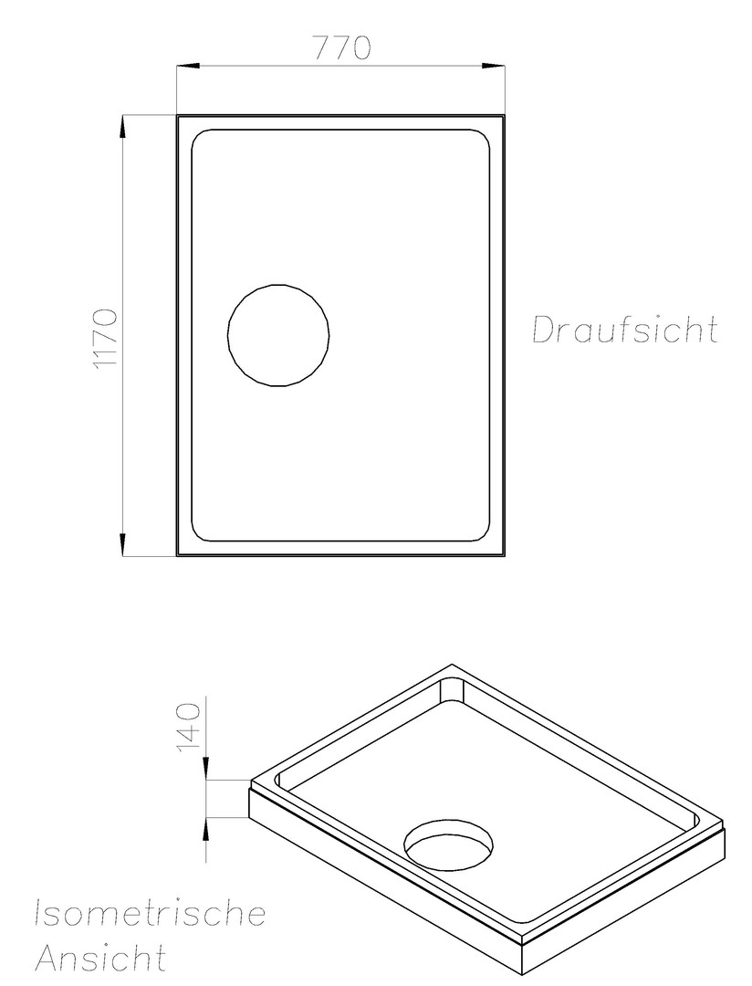 Schedel Duschwannenträger Koralle T700 120 x 80 x 2 cm, Höhe 14cm