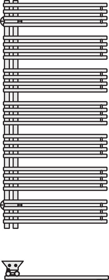 für Warmwasser-Betrieb, variable Anschlussmöglichkeiten, Sammelrohr rechts mit seitlichem Anschluss, Querrohre seitlich offen, Befestigungs-Set beigepackt, entspricht der Anforderungsklasse II der Richtlinie VDI 6036, bauseits ist der Wandbaustoff auf ausreichende Tragfähigkeit zu prüfen, alle sichtbaren Befestigungsteile in Heizkörperfarbe, Anschlüsse 2x G 1/2" IG seitlich nach unten, Nabenabstand 50 mm, für Einrohr-Betrieb geeignet, Entlüftung G 1/4" nach hinten, im äußeren Sammelrohr, Betriebsdruck max. 10 bar, Prüfdruck 13 bar, Betriebsbedingungen: Heißwasser bis 110 °C, Elektro-Zusatzbetrieb möglich (max. Vorlauftemperatur 80 °C), bei seitlichem Anschluss Elektro-Heizstab nicht nachrüstbar, da sich durch das erforderliche T-Stück die Anschlussposition verändert, Abstand Unterkante Heizkörper zu Boden min. 150 mm