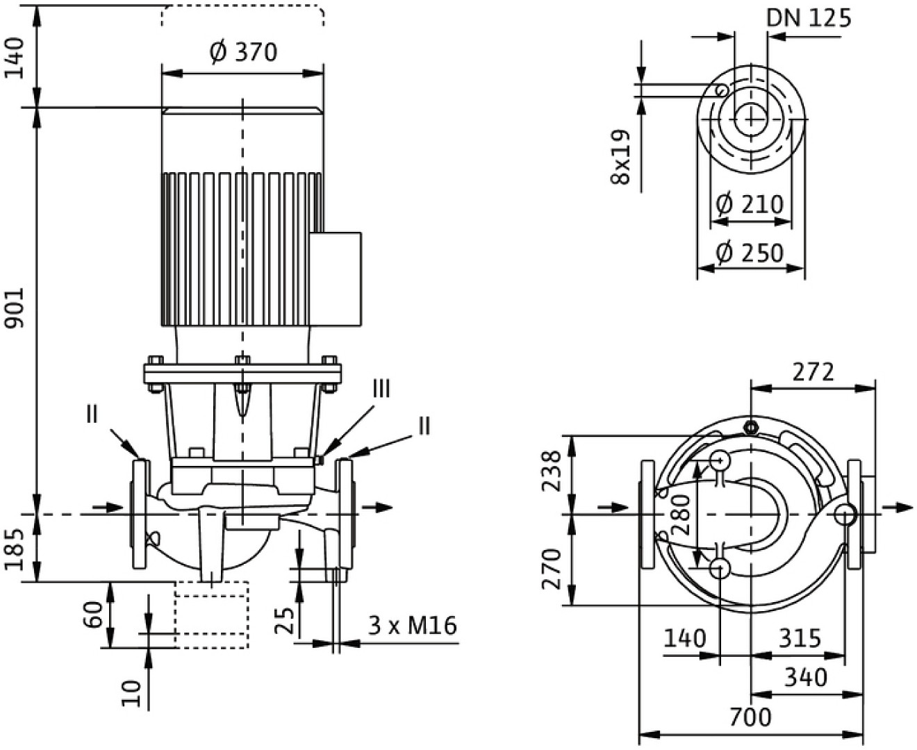 Wilo Trockenläufer-Standardpumpe CronoLine IL 125/300-18,5/4, 18,5 kW, 4-polig