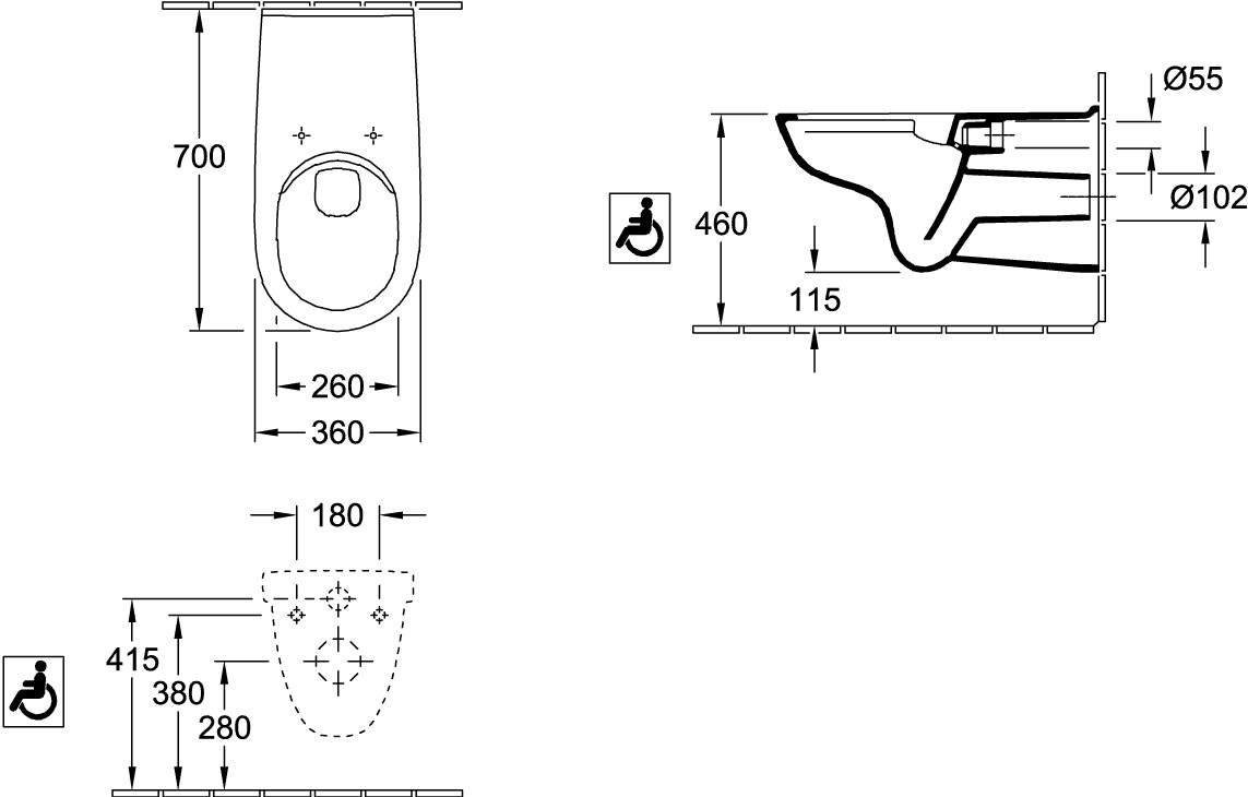 V&B Wand-Tiefspül-WC VICARE DirectFlush, 36x70cm, Abgang waagerecht, weiß K20562801