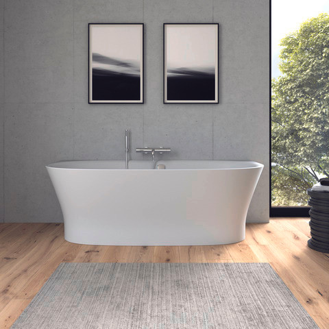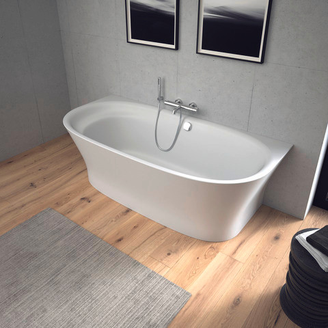 nahtlose Verkleidung, unterschiedliche Rückenschräge wahlweise rechts oder links, Material Mineralguss, Materialart DuraSolid A, Nutzinhalt 205 l, mit Fußgestell
