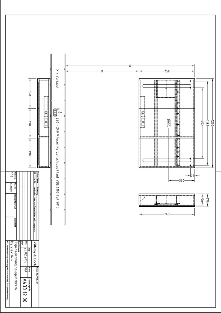 V&B Spiegelschrank MY VIEW 14+ 120 x 75 x 17,3 cm, 27,18 W, LED-Beleuchtung, 3 Türen K20714885