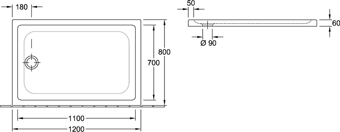 V&B Duschwanne O.NOVO 120 x 80 x 6 cm, weiß
