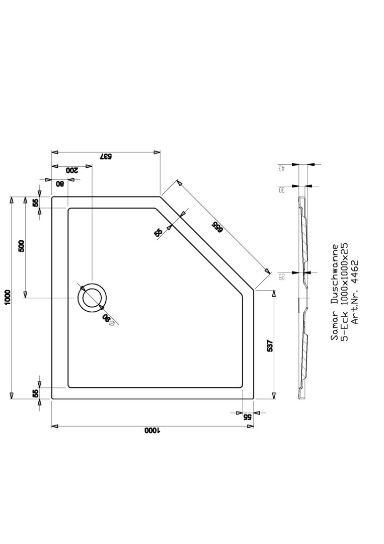 Hoesch 5-Eck-Duschwanne Samar weiß, 100 x 100 x 3 cm, ultraflach K20737062