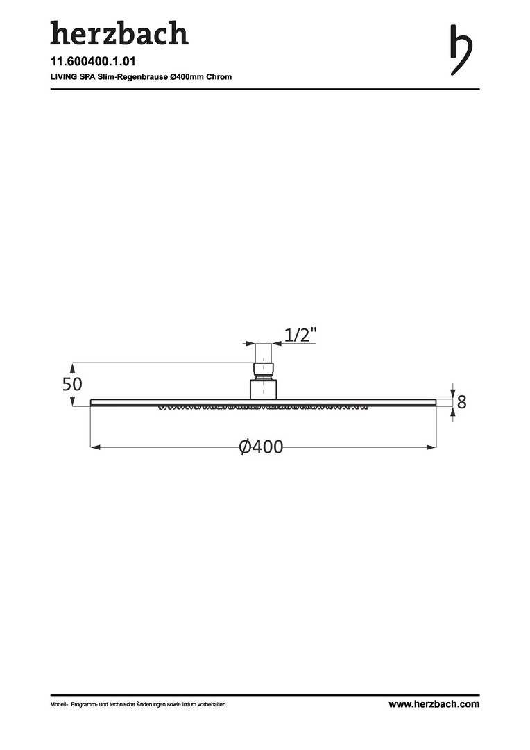Herzbach Regenbrause Living Spa slim round für Decken-/Wandarm, 400 mm, chrom