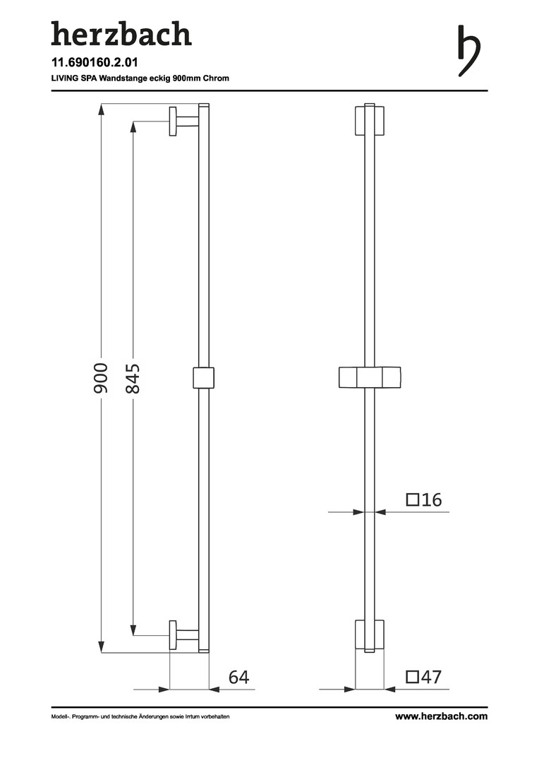 Herzbach Brausestange Living Spa square 900 mm, chrom
