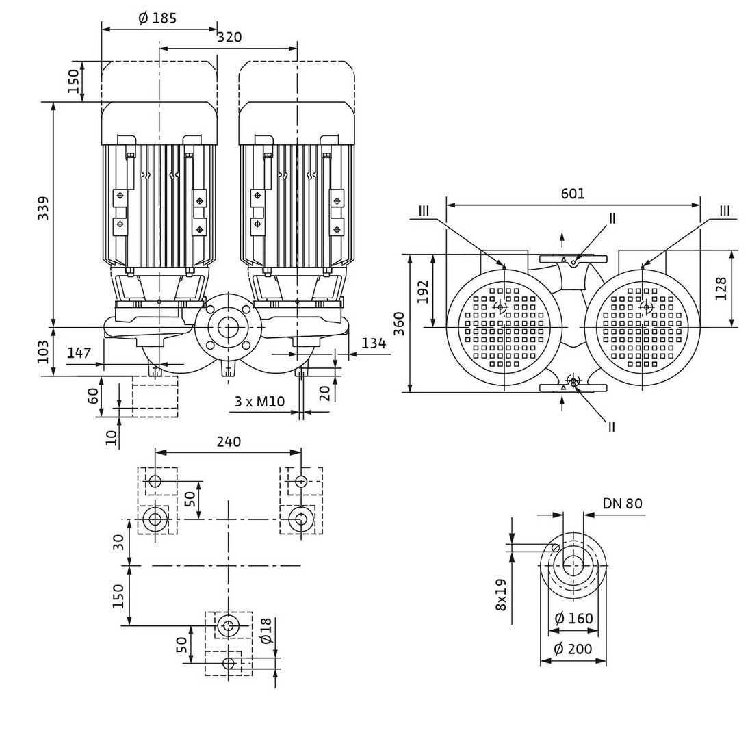 Wilo Trockenläufer-Standarddoppelpumpe VeroTwin DPL 80/125-0,75/4, 0,75 kW, 4-polig