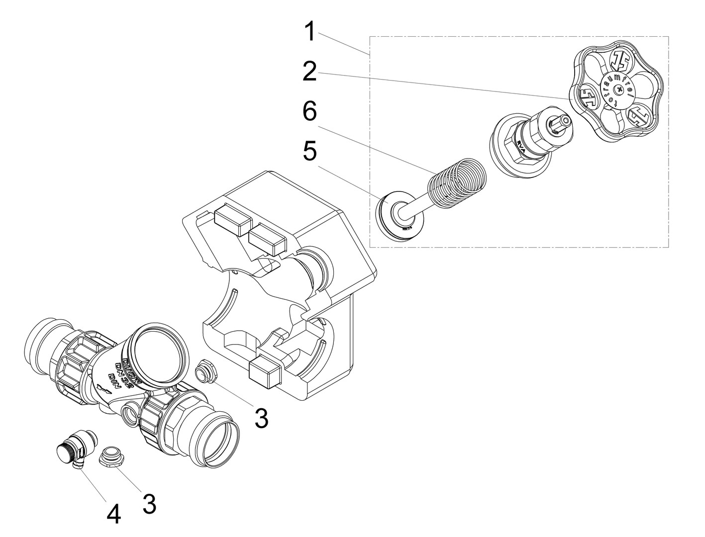 mit direktem Pressanschluss, Viega-Pressnippel, Schallschutz (DN 15-32), mit Prüfschraube, Entleerungsventil 1831 1/4", Oberteil 1821