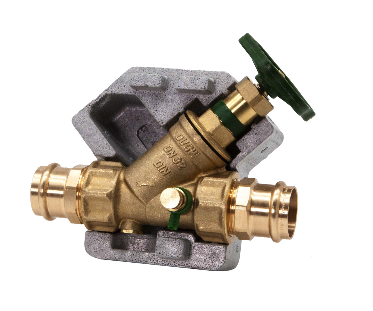 Schlösser KFR-Ventil DG1638 DN 32, 35 mm, mit Dämmschale, IG, mit Entleerung, nichtsteigende Spindel