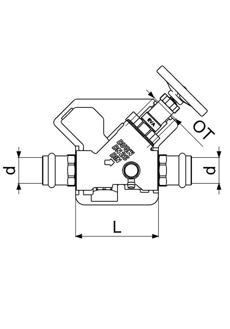 Schlösser KFR-Ventil DG1638 DN 25, 28 mm, mit Dämmschale, IG, mit Entleerung, nichtsteigende Spindel