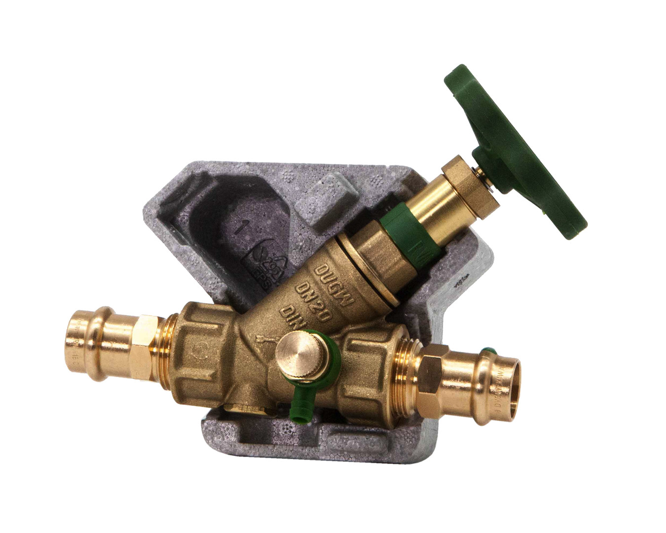 Schlösser KFR-Ventil DG1638 DN 20, 18 mm, mit Dämmschale, IG, mit Entleerung, nichtsteigende Spindel