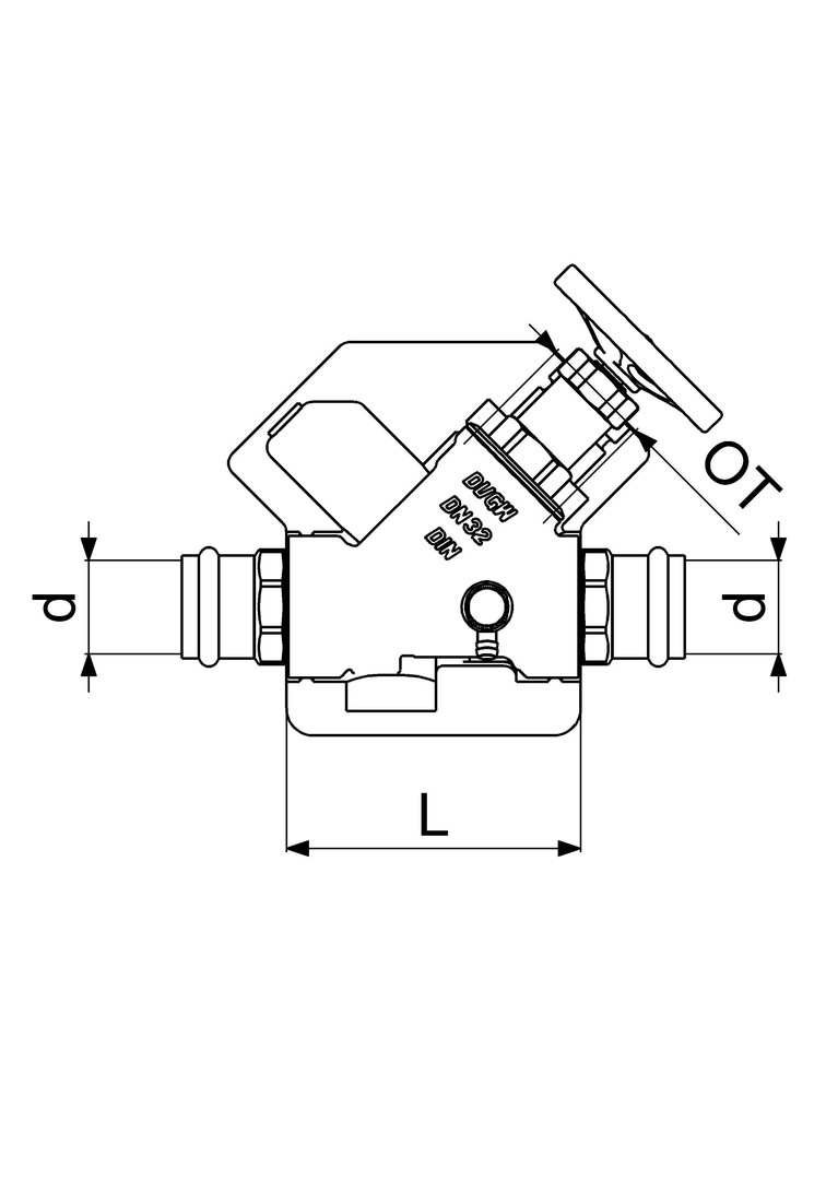 Schlösser Freistromventil DG1538 DN 32, 35 mm, mit Dämmschale, IG, mit Entleerung, nichtsteigende Spindel K19161800