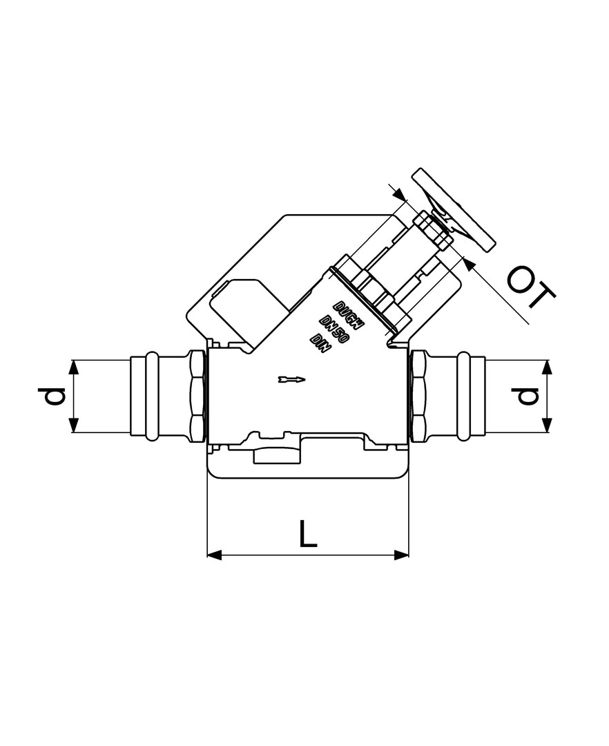 Schlösser Freistromventil DG1528 DN 50, 54 mm, mit Dämmschale, IG, ohne Entleerung, nichtsteigende Spindel
