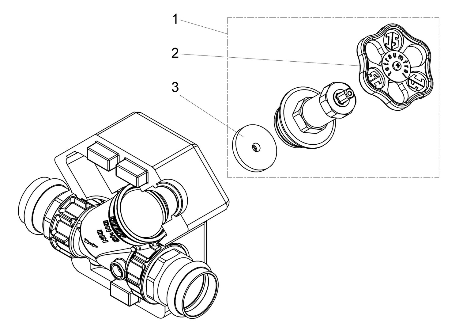 Schlösser Freistromventil DG1528 DN 25, 28 mm, mit Dämmschale, IG, ohne Entleerung, nichtsteigende Spindel K19161786