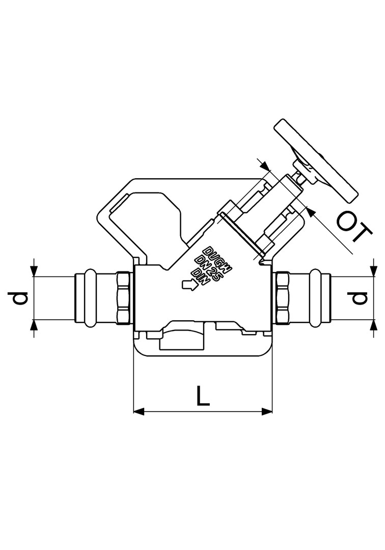 Schlösser Freistromventil DG1508 DN 25, 28 mm, mit Dämmschale, IG, ohne Entleerung, steigende Spindel K19161760