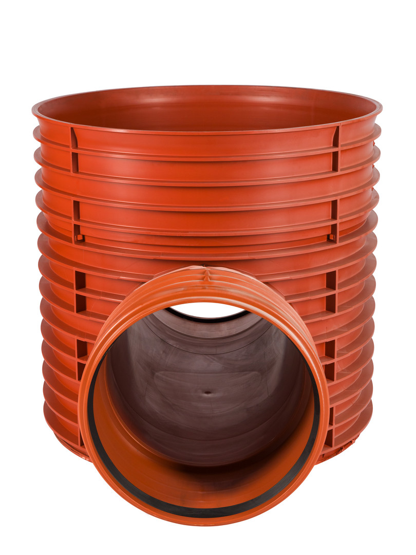 für den Bau von Reinigungs-, Kontroll- und Übergabeschächten zur privaten und kommunalen Entwässerung von Hofflächen, Parkplätzen und Fußgängerzonen, Farbe orange, gem. DIN EN 13598 ist der Einbau auf eine maximale Gesamthöhe von 6 m beschränkt, chemisch resistent im Bereich pH 2-12, Temperaturbeständig je nach Einsatzgebiet bei -20°C bis 90°C, 100% recycelbar, Verlegung gemäß DIN EN 1610